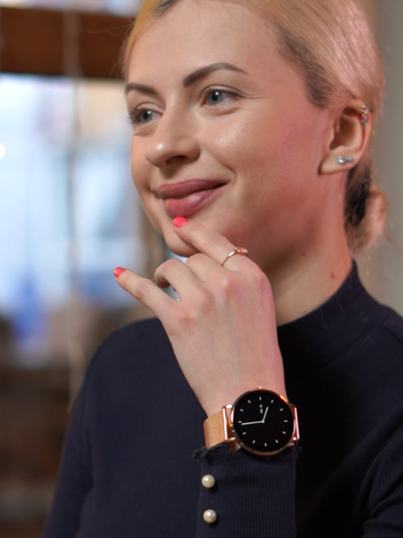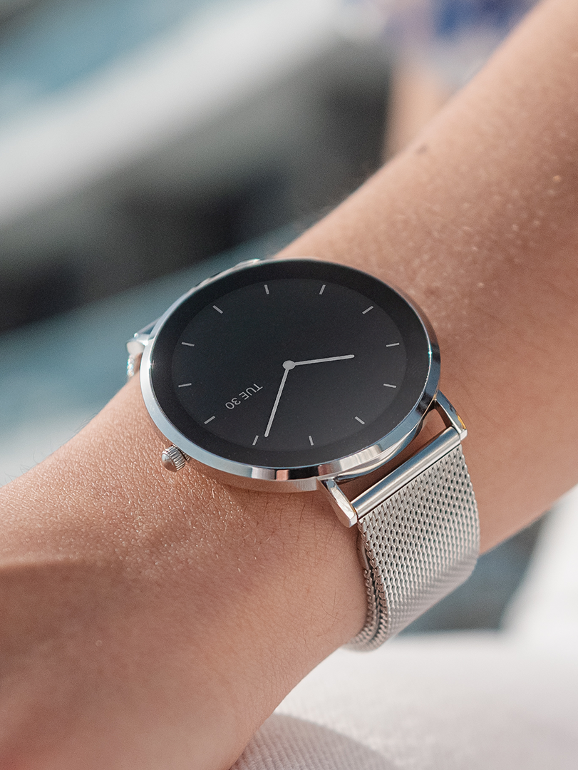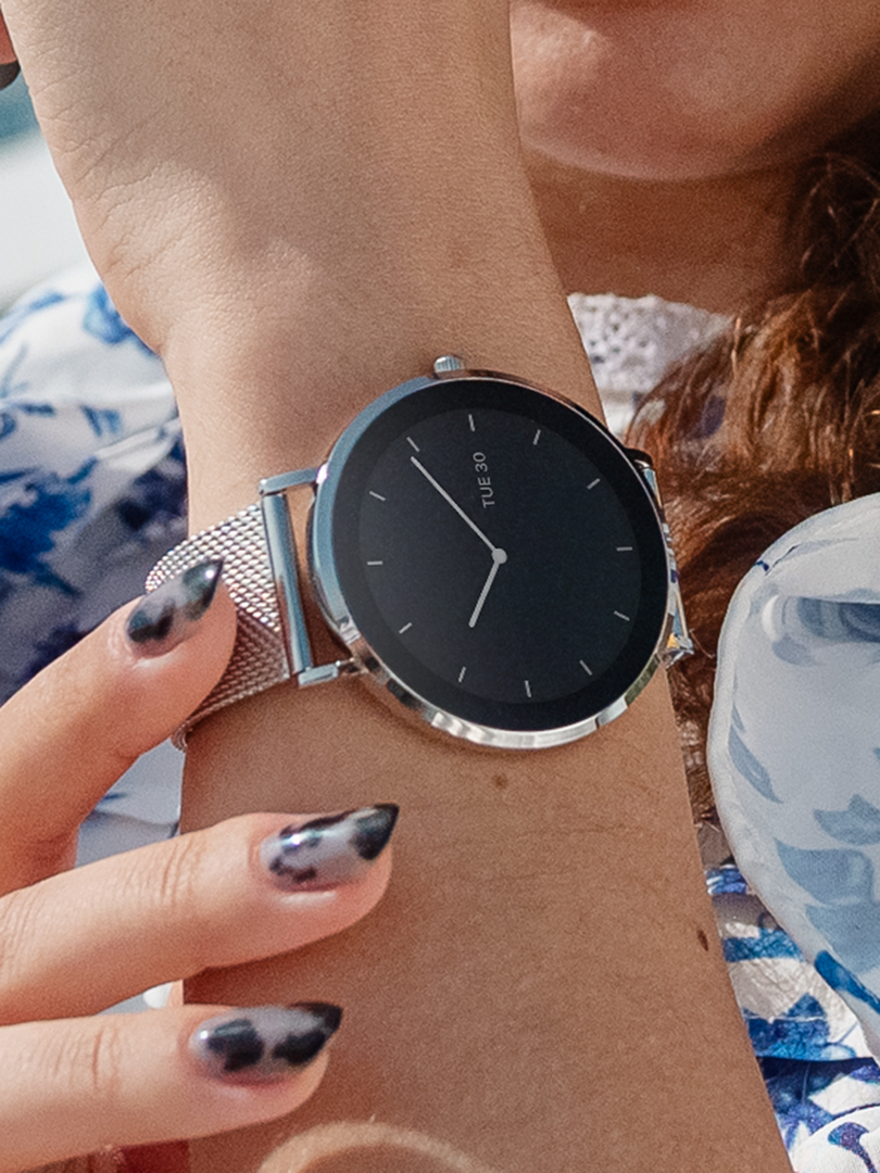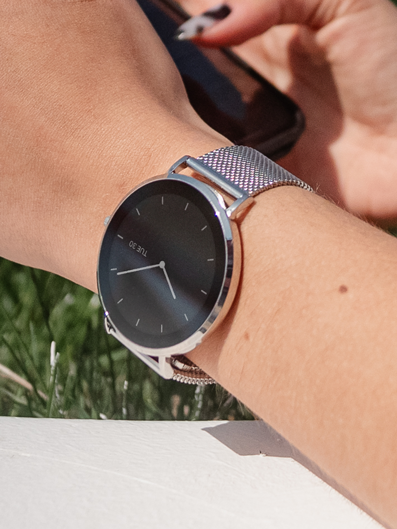Ultra ince profil, gün boyu rahat kullanım sağlar; kol altına kolayca kayar ve şık, zarif bir görünüm sunar.